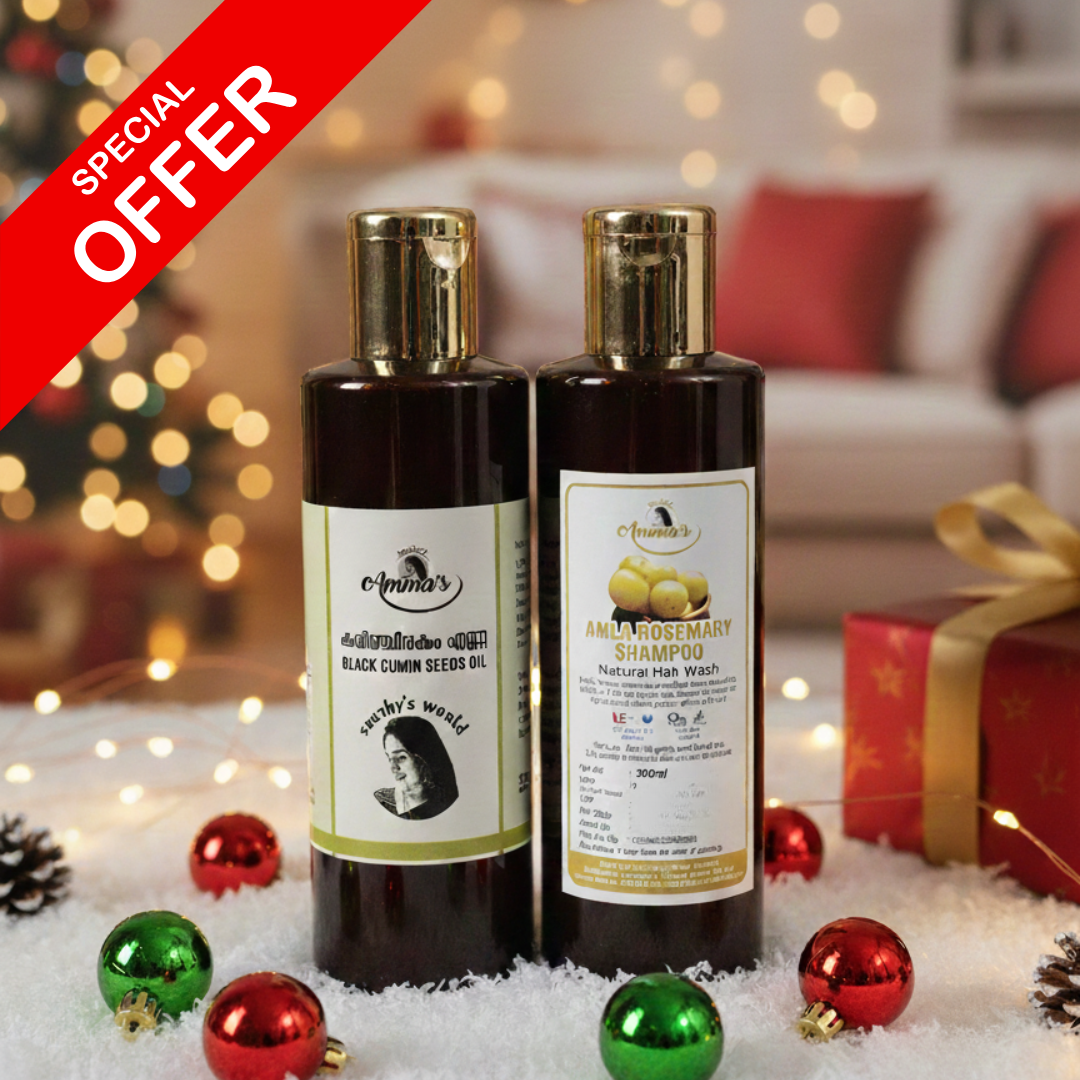This powerful combo of Onion Curry Leaves Oil (200 ml) and Amla Rosemary Shampoo is designed to strengthen hair from root to tip. The oil helps reduce hair fall and nourish the scalp, while the shampoo gently cleanses, refreshes, and promotes healthy hair growth. A perfect natural care combo for stronger, healthier hair.